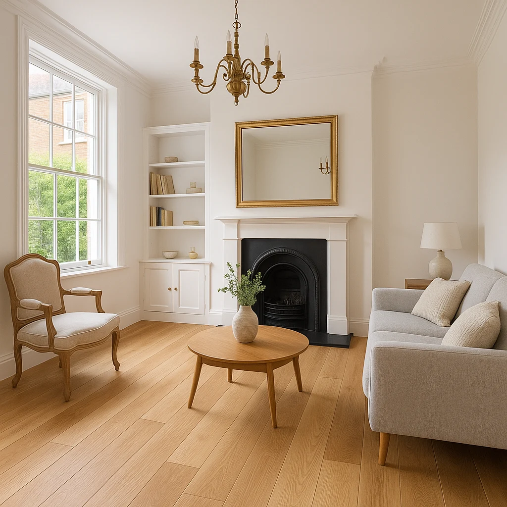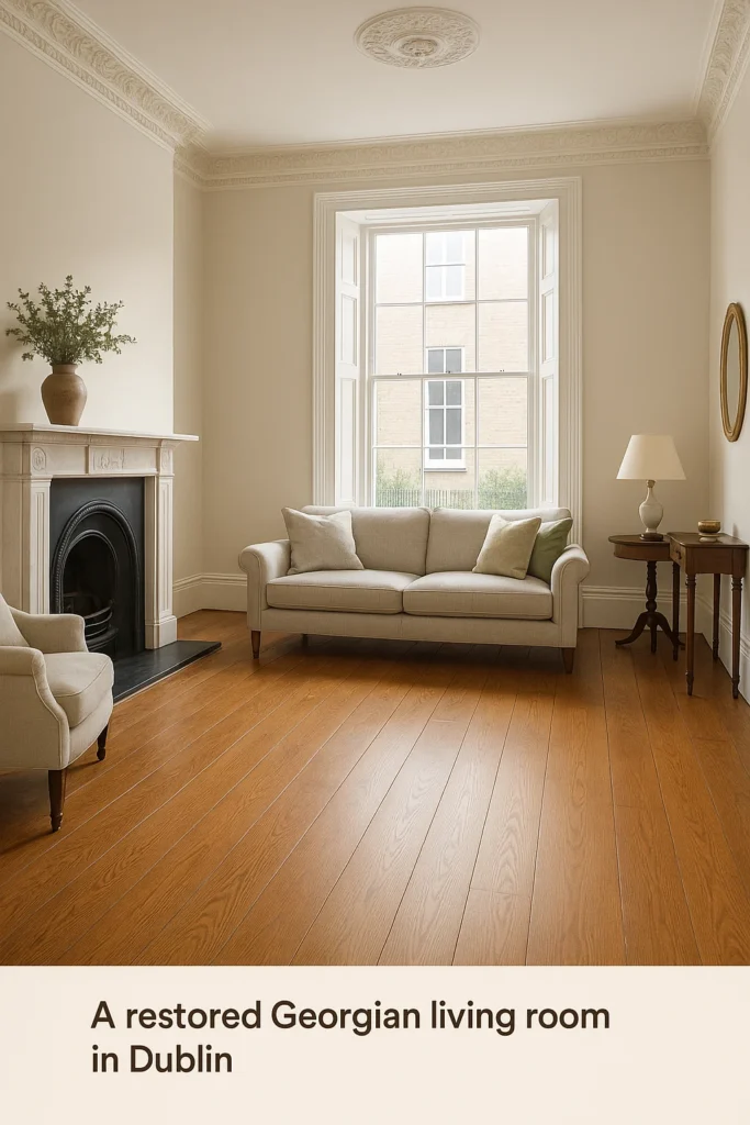 Solid hardwood remains one of the most prestigious choices for Dublin homes, particularly in Georgian and Victorian houses where traditional oak or walnut floors match the architectural character. Hardwood is prized for its durability, natural warmth, and ability to be sanded and refinished multiple times.
