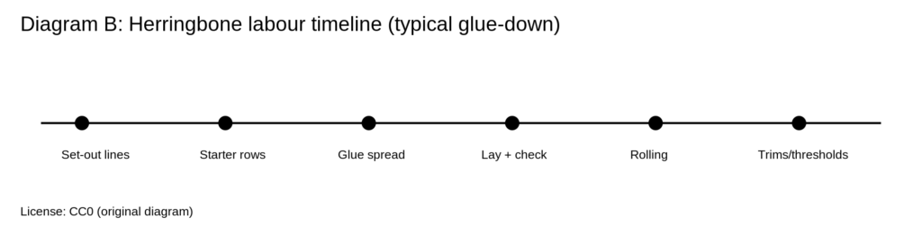 - Productivity (herringbone): can be ~12–20 m²/day in good conditions, slower in small/awkward rooms.